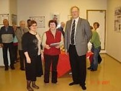 Kristján G. Jóhannsson stjórnarformaður afhenti Hörpu Guðmundsdóttur og samstarfsfólki frá Vesturafli peningagjöfina í hinni árlegu skötuveislu starfsmanna Hraðfrystihússins - Gunnvarar, sem haldin var í hádeginu í dag. Við það tækifæri sagði Kristján að Vesturafl hefði unnið mjög gott og þarft starf og því hefði fyrirtækið ákveðið að styðja við starfsemi þess með þessum hætti.
