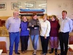 Kristján G. Jóhannsson stjórnarformaður afhenti Hörpu Guðmundsdóttur og samstarfsfólki frá Vesturafli peningagjöfina í hinni árlegu skötuveislu starfsmanna Hraðfrystihússins - Gunnvarar, sem haldin var í hádeginu í dag. Við það tækifæri sagði Kristján að Vesturafl hefði unnið mjög gott og þarft starf og því hefði fyrirtækið ákveðið að styðja við starfsemi þess með þessum hætti.